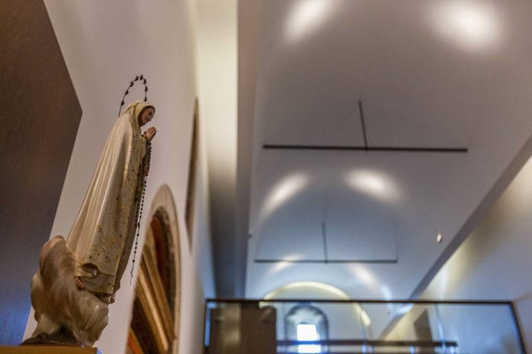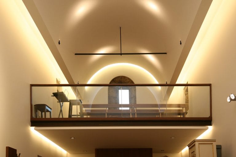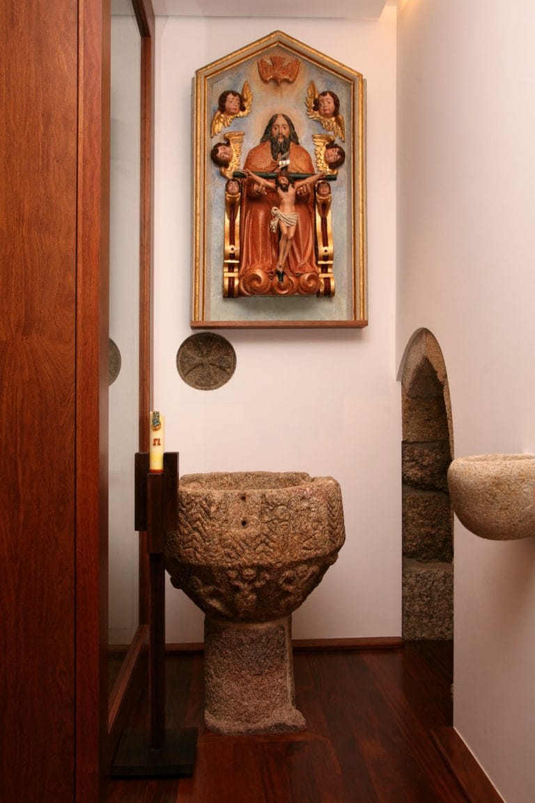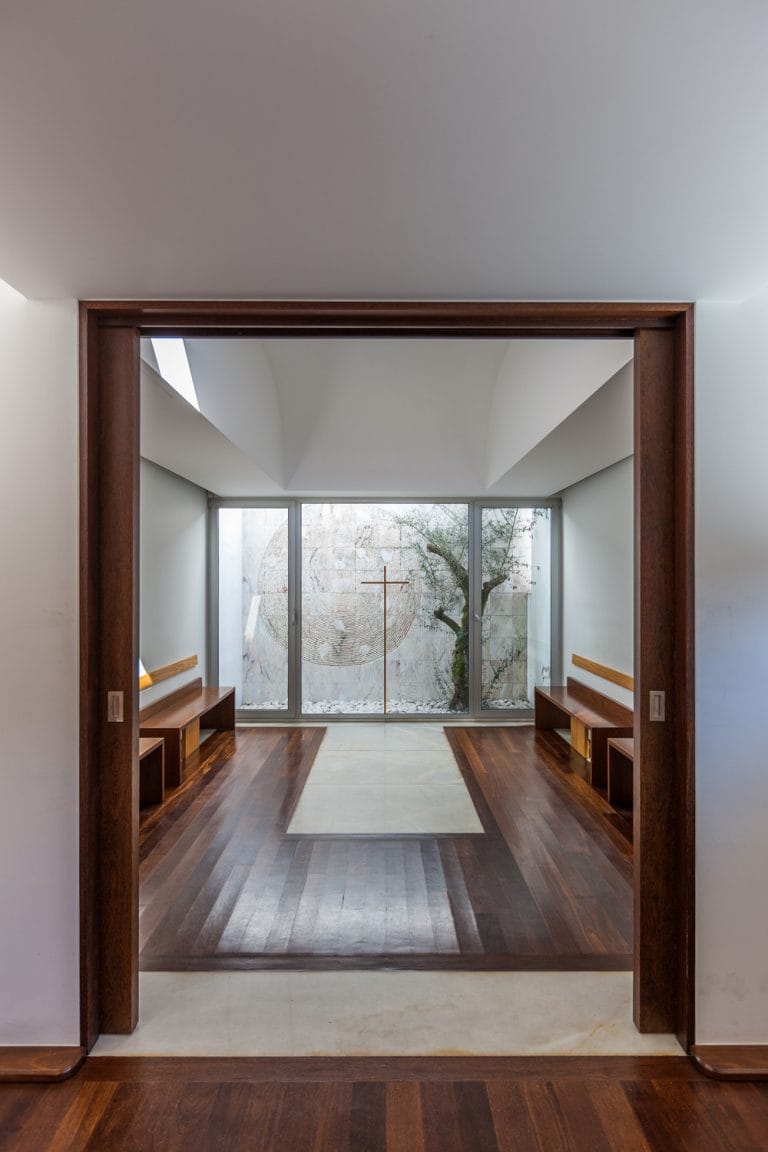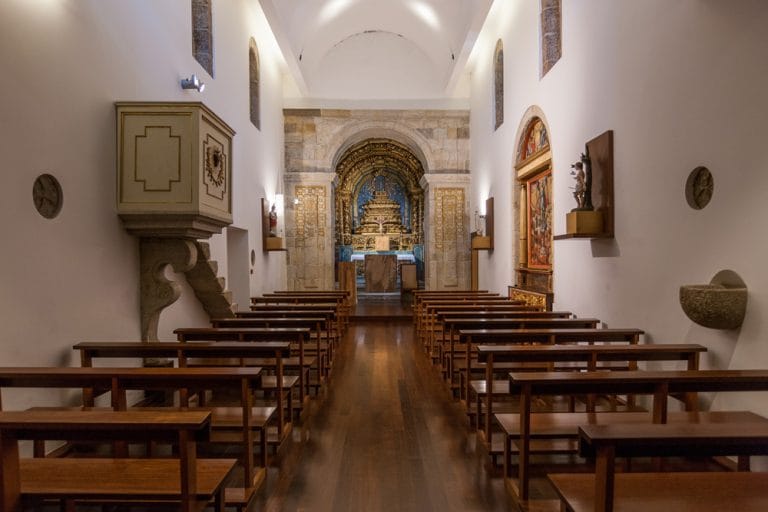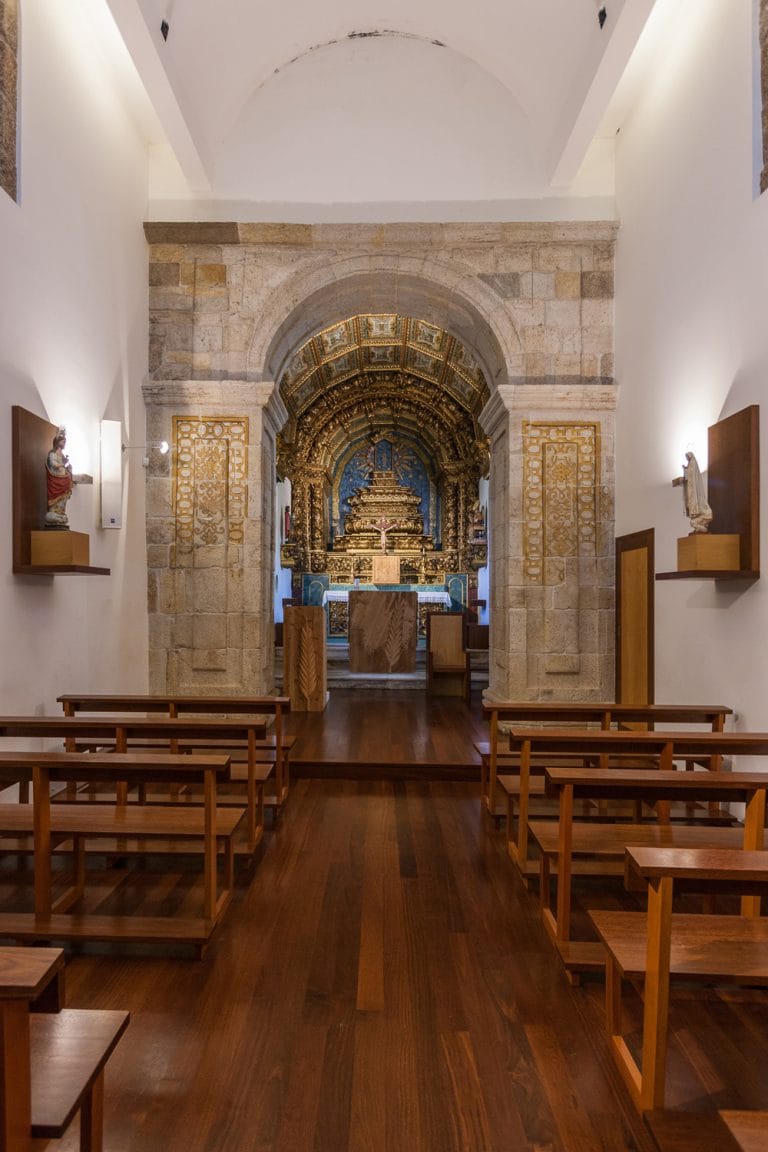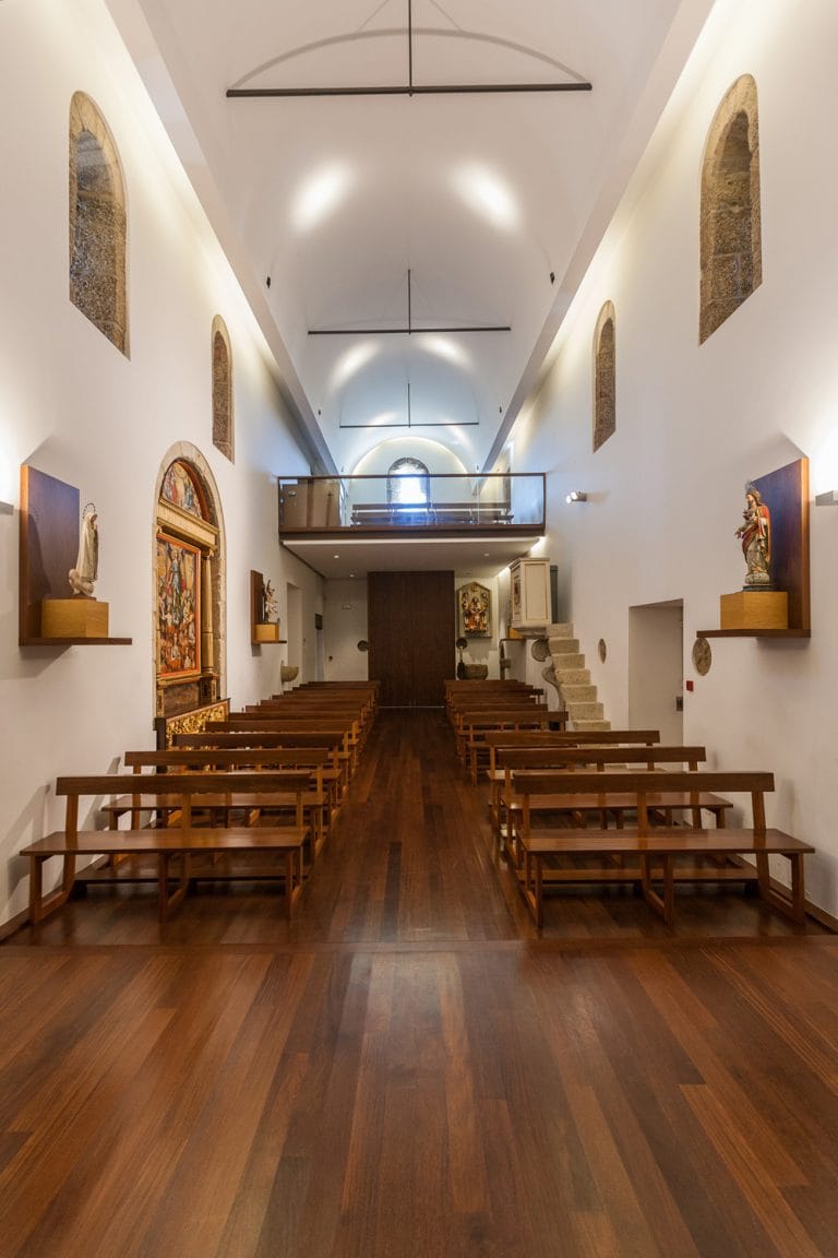 No interior da Igreja, renovou-se os materiais e reconstruiu-se o Coro-Alto, devolvendo a simplicidade, serenidade e verticalidade ao espaço de modo a valorizar os elementos mais importantes.