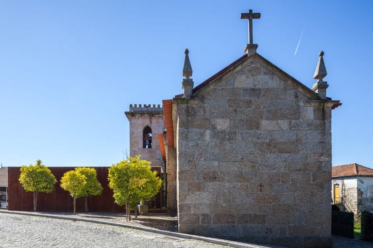 O presente projeto incide sobre a recuperação da Igreja de Santo Adrião, consistindo, ainda, na construção de um novo edifício para Sacristia, Capela Mortuária e sanitários de apoio. Através da demolição de alguns elementos pretendia-se restituir à Igreja primitiva a sua dignidade e forma original. O novo edifício articula-se com a Igreja e a Torre de modo a valorizar os momentos de entrada e recuperar o conceito de claustro. No centro do claustro foi desenvolvido um espelho de água que potencia o encontro entre o céu e a terra.